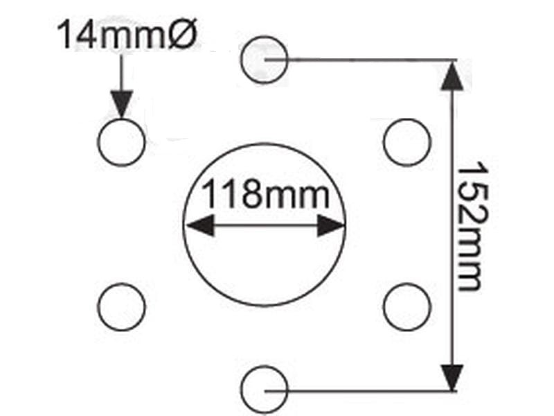 Otwór centralny B: 118 mm