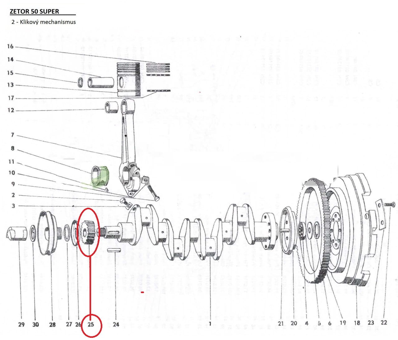 Koło zębate- małe wału korbowego Zetor Super 50