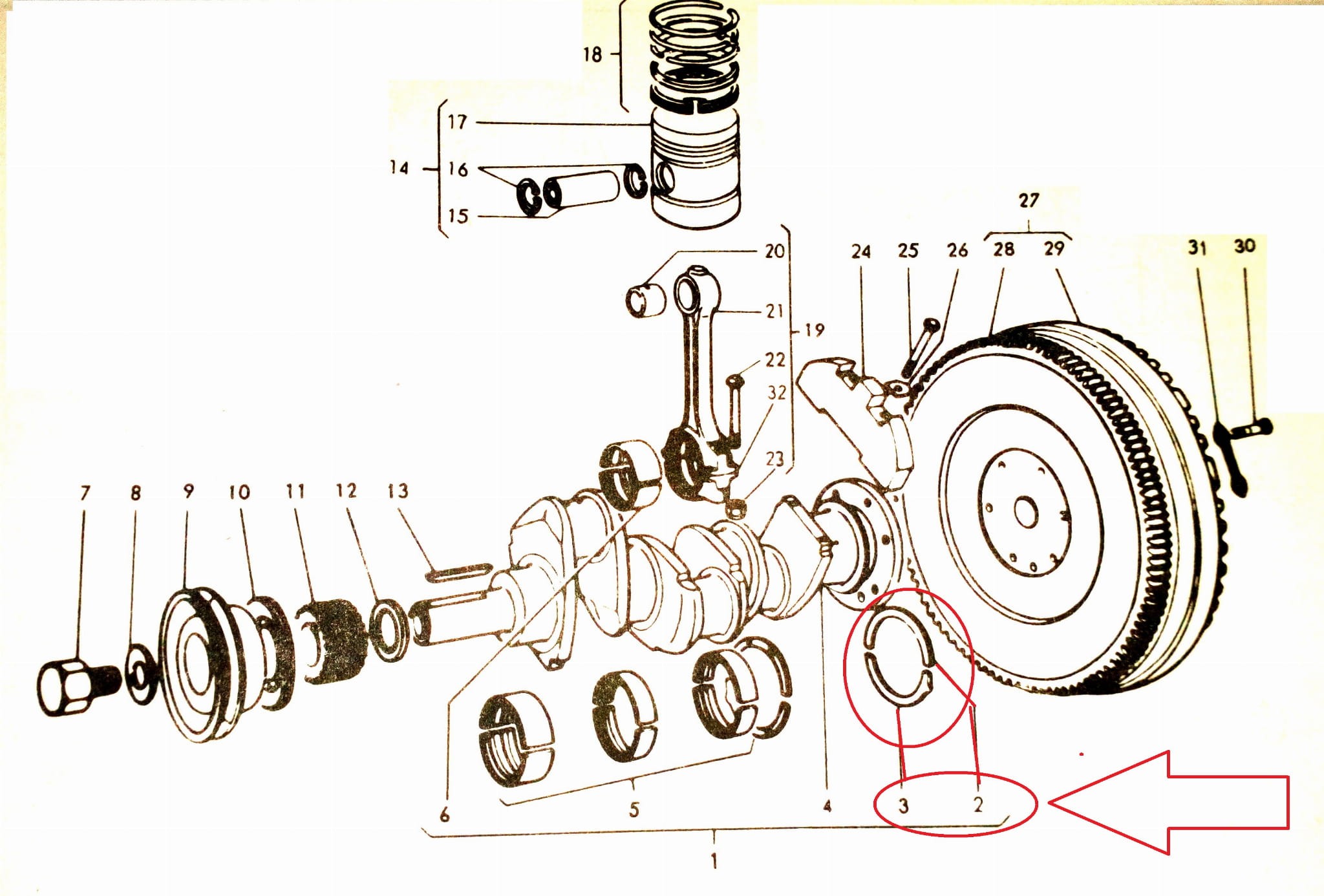 Komplet półpierścieni oporowych (dystansowych) wału